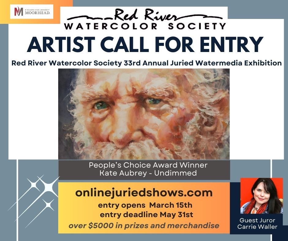 We are delighted to invite you to participate in the 33rd National Juried Watermedia Exhibition, hosted by the Red River Watercolor Society in an exciting new partnership with Minnesota State University Moorhead. This event will be held from XXXXX online with the annual National Show workshop at Minnesota State University Moorhead. Our esteemed juror and workshop instructor for this year is Carrie Waller.